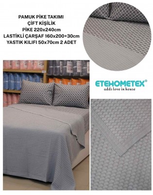 ETEHOMETEX ÇİFT KİŞİLİK %100 PAMUK HAVUZLU PİKE TAKIMI GRİ 8696474232075