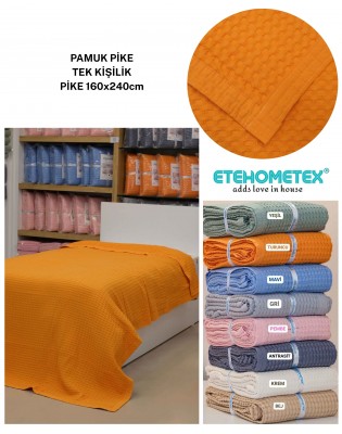 ETEHOMETEX HAVUZLU PİKE TAKIMI %100 PAMUK TEK KİŞİLİK TURUNCU 8696474232088