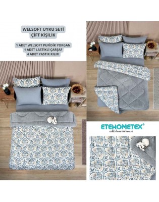 ETE HOMETEX ÇİFT KİŞİLİK WELSOFT UYKU SETİ AKSU GRİ 8696474231972