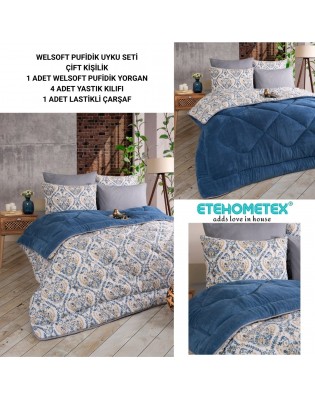 ETE HOMETEX ÇİFT KİŞİLİK WELSOFT UYKU SETİ AKSU İNDİGO 8696474231973