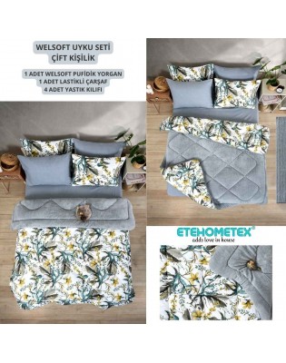 ETE HOMETEX ÇİFT KİŞİLİK WELSOFT UYKU SETİ ASYA GRİ 8696474231978
