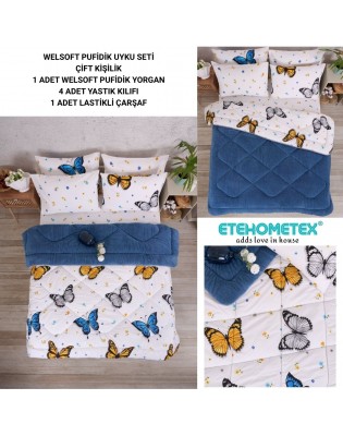 ETE HOMETEX ÇİFT KİŞİLİK WELSOFT UYKU SETİ KELEBEK İNDİGO 8696474231981